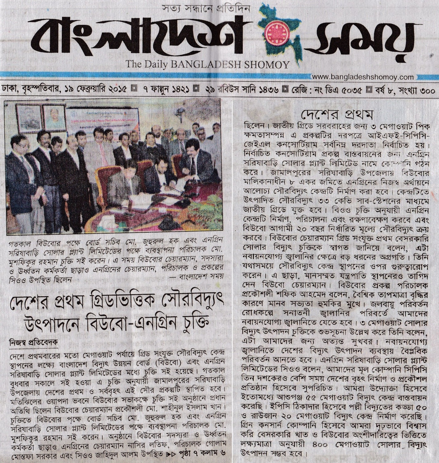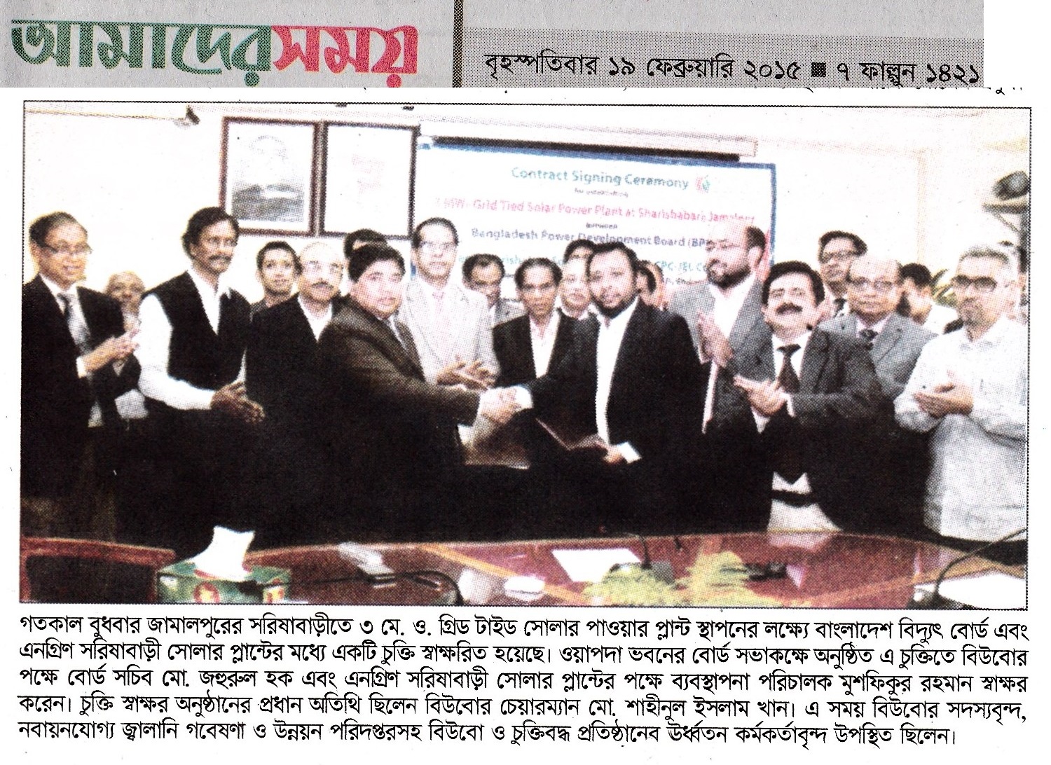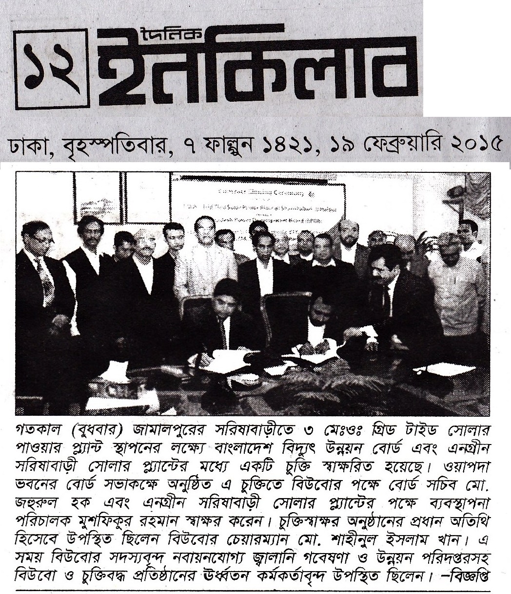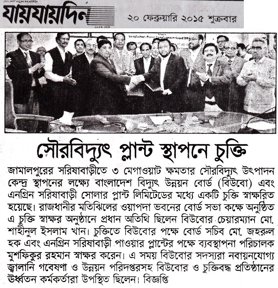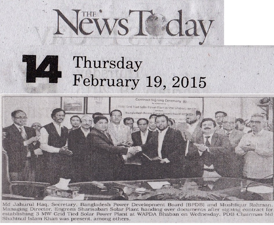 3MWp Solar Grid tie Power Plant's Contract Signing Agreement between Engreen and BPDB on 18th Feb'15