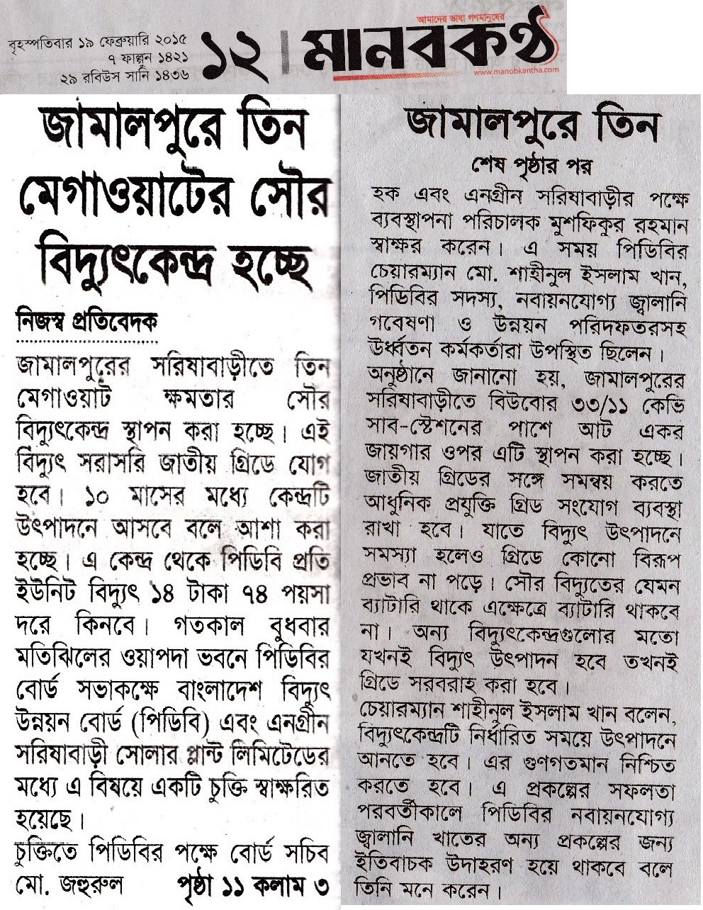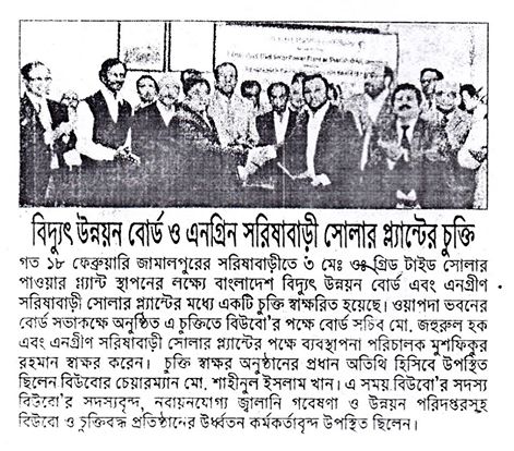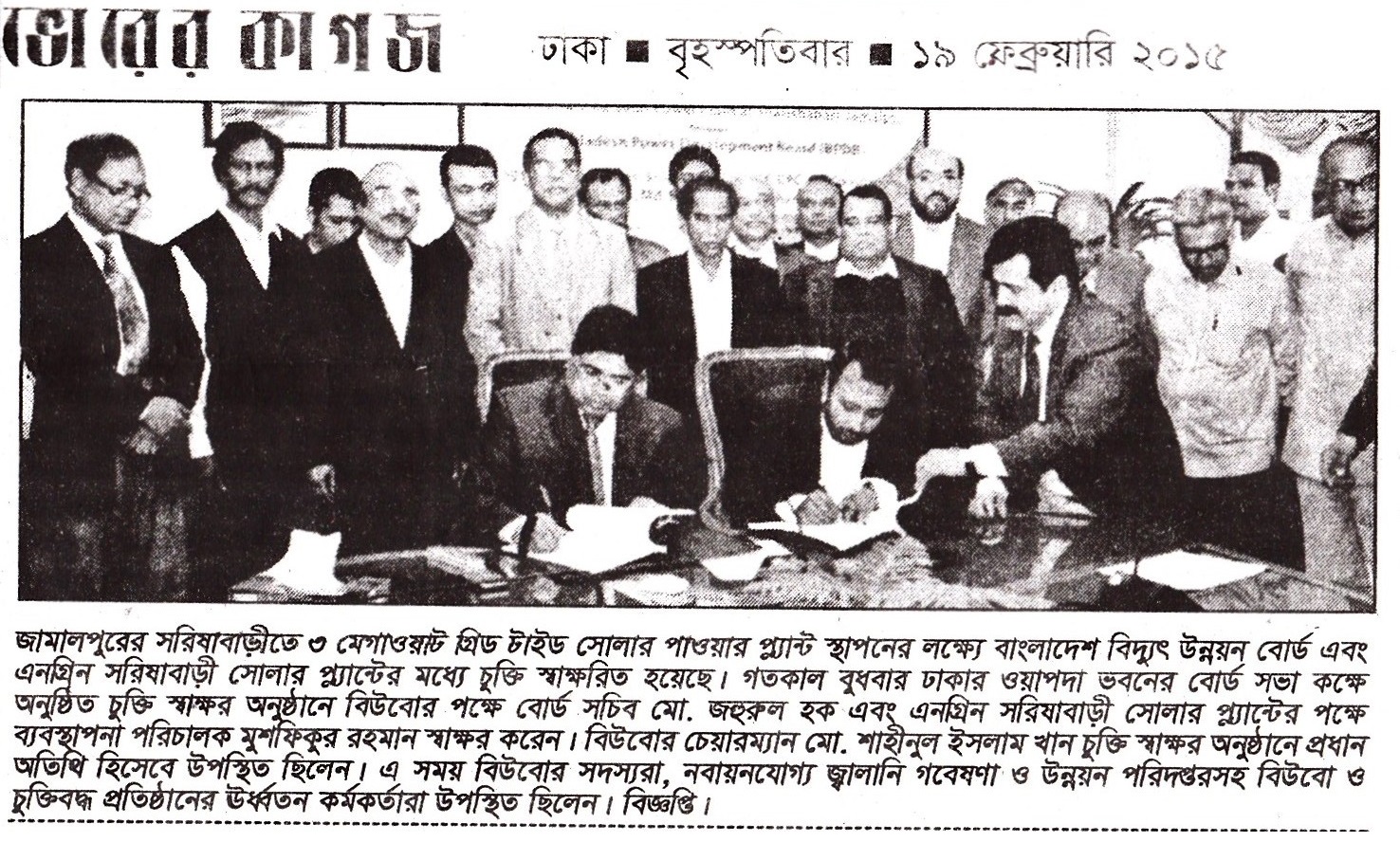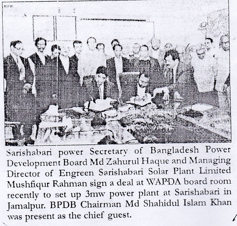 3MWp Solar Grid tie Power Plant's Contract Signing Agreement between Engreen and BPDB on 18th Feb'15