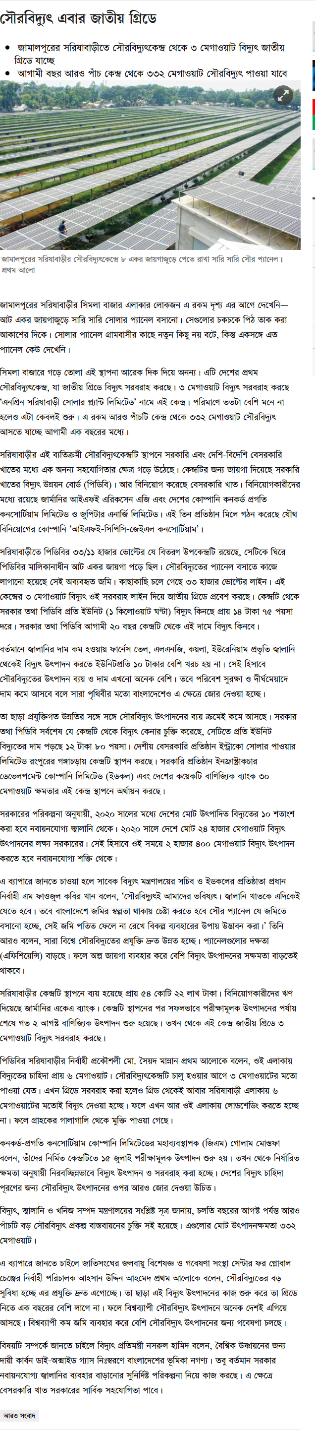 Prothom-Alo New on 3MWp Solar Plant
